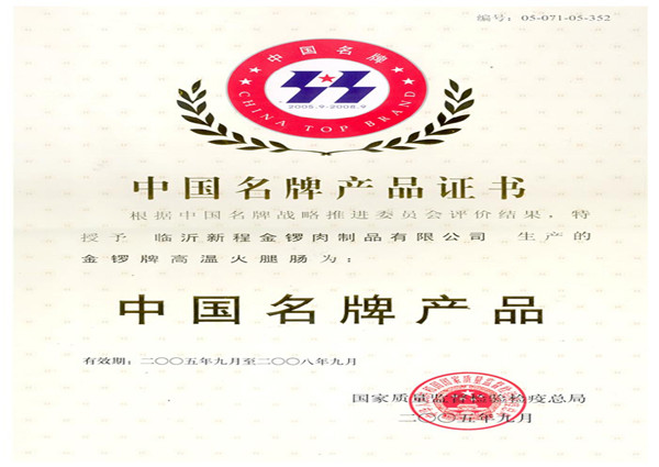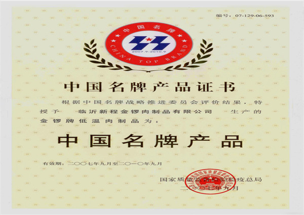 中國(guó)名牌產(chǎn)品—低溫肉制品